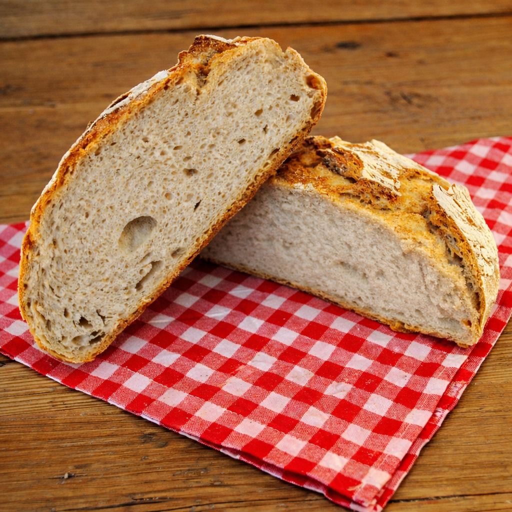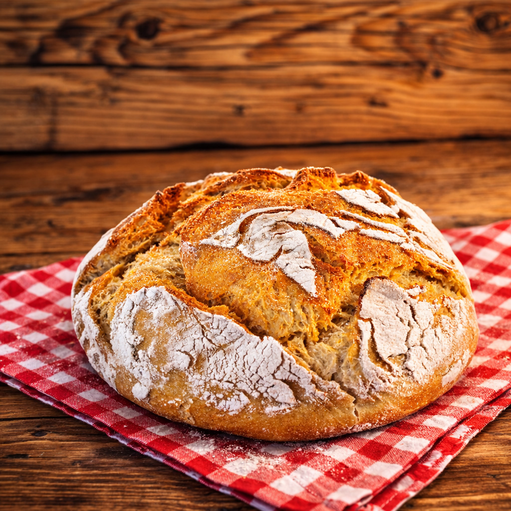Ein saftiges Weizenmischbrot mit rustikaler Kruste, für süßen oder deftigen Belag geeignet.